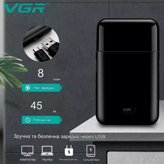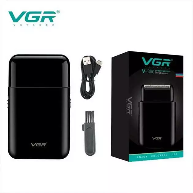 Аккумуляторная мужская мини электробритва VGR V-390 для бритья бороды и усов шейвер. Цвет: черный
