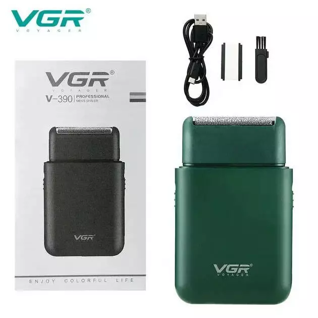 Аккумуляторная мужская мини электробритва VGR V-390 для бритья бороды и усов шейвер. Цвет: зеленый