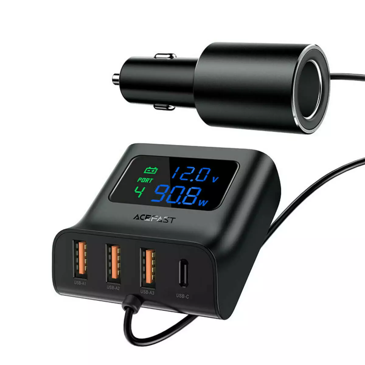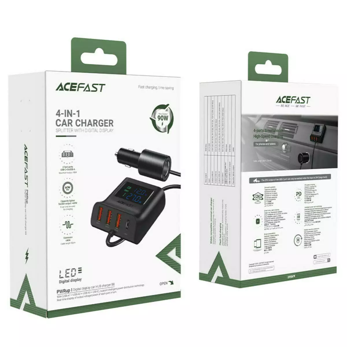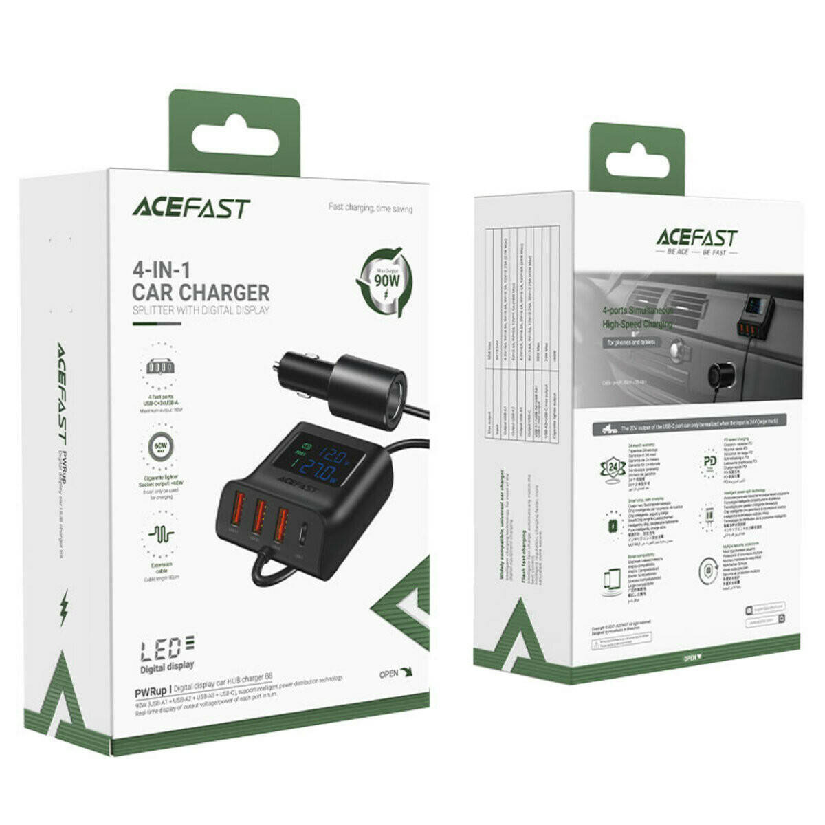 Автомобільний зарядний пристрій Acefast B8, LCD Display, HUB Charger, Black