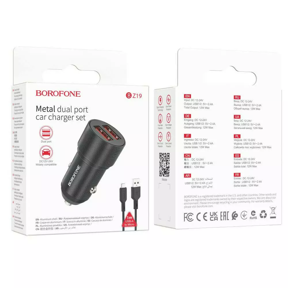 Автомобільний зарядний пристрій Borofone BZ19 Wisdom, Cable Micro,