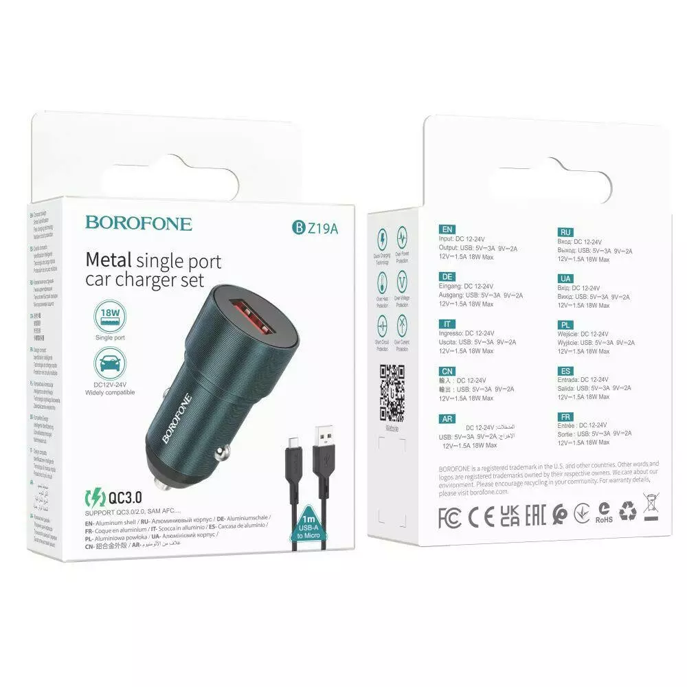 Автомобільний зарядний пристрій Borofone BZ19A Wisdom, QC 3.0 18W,