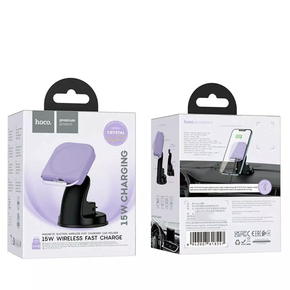 Автотримач Hoco HW18, Wireless Charging MagSafe, 15W, Purpule