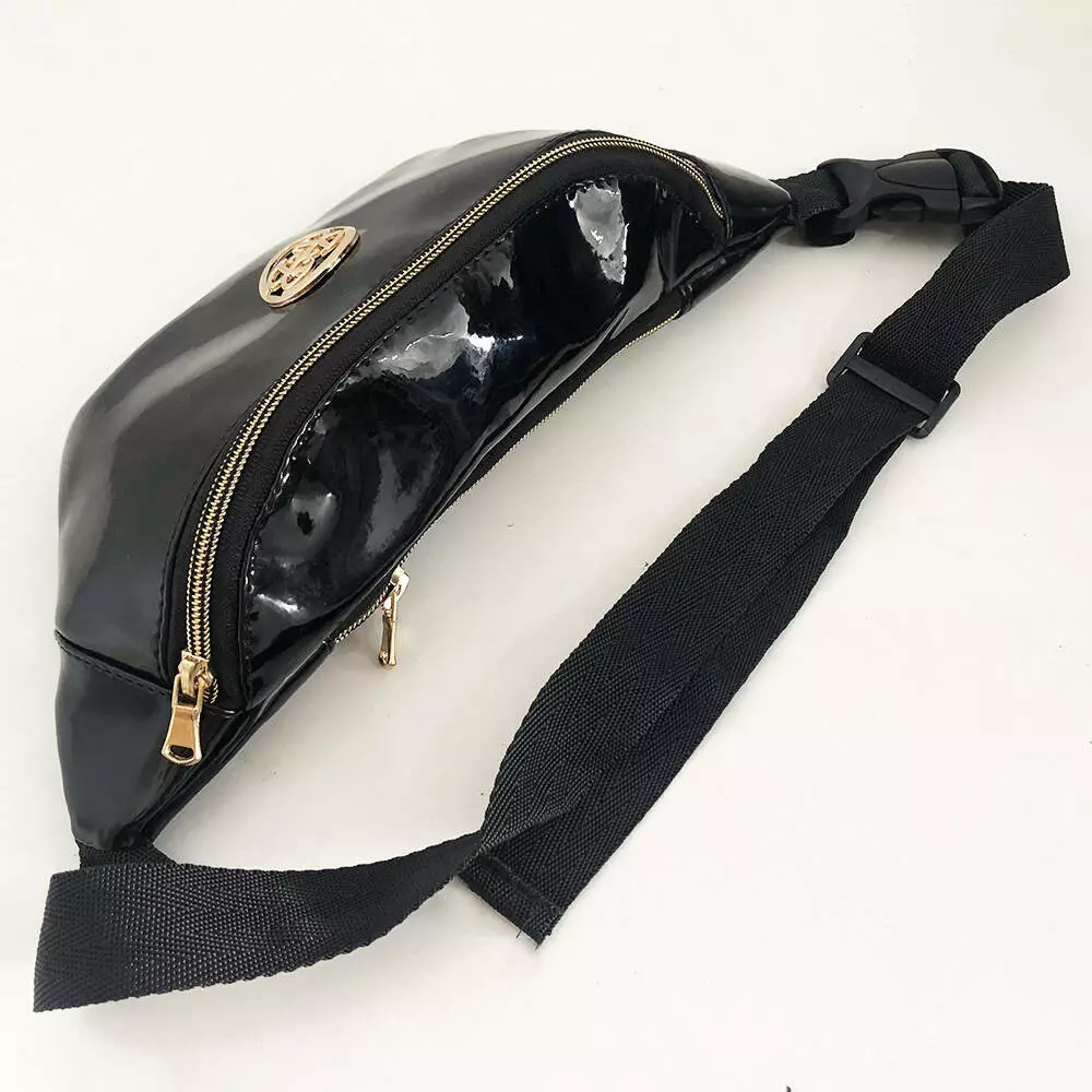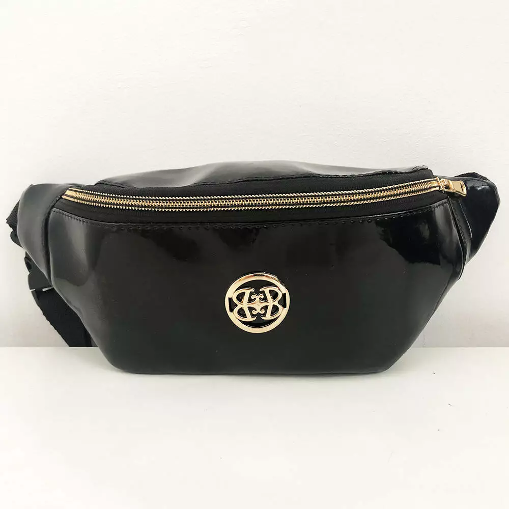 Бананка из лакированной эко кожи черная. Модель: 67493