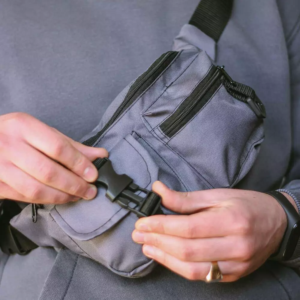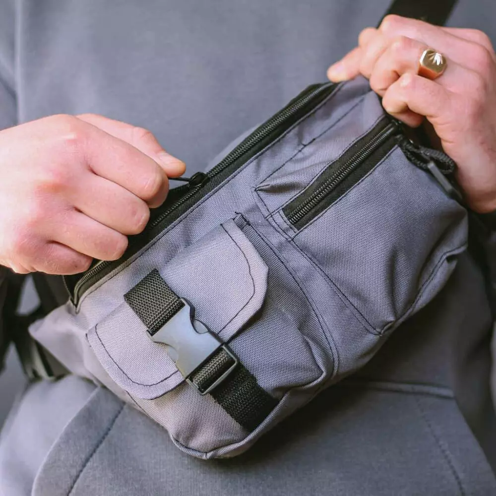 Бананка из ткани тактическая с внешними карманами. Цвет: серый