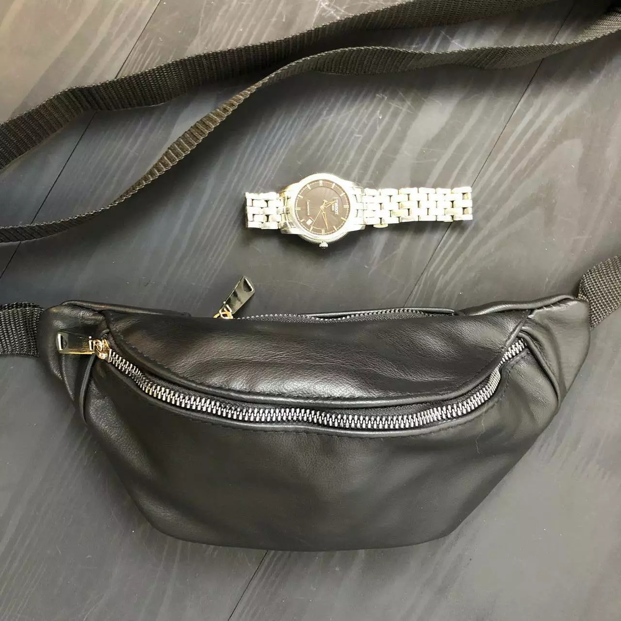 - Кожаная бананка сумка черного цвета – стильный и функциональный аксессуар.