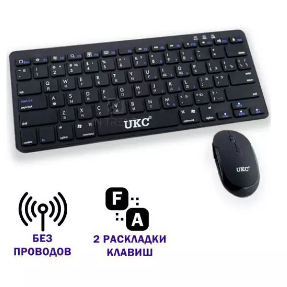 Беспроводная клавиатура + мышка оптическая UKC WI 1214, бюджетная клавиатура для игр компьютера ПК и ноутбука