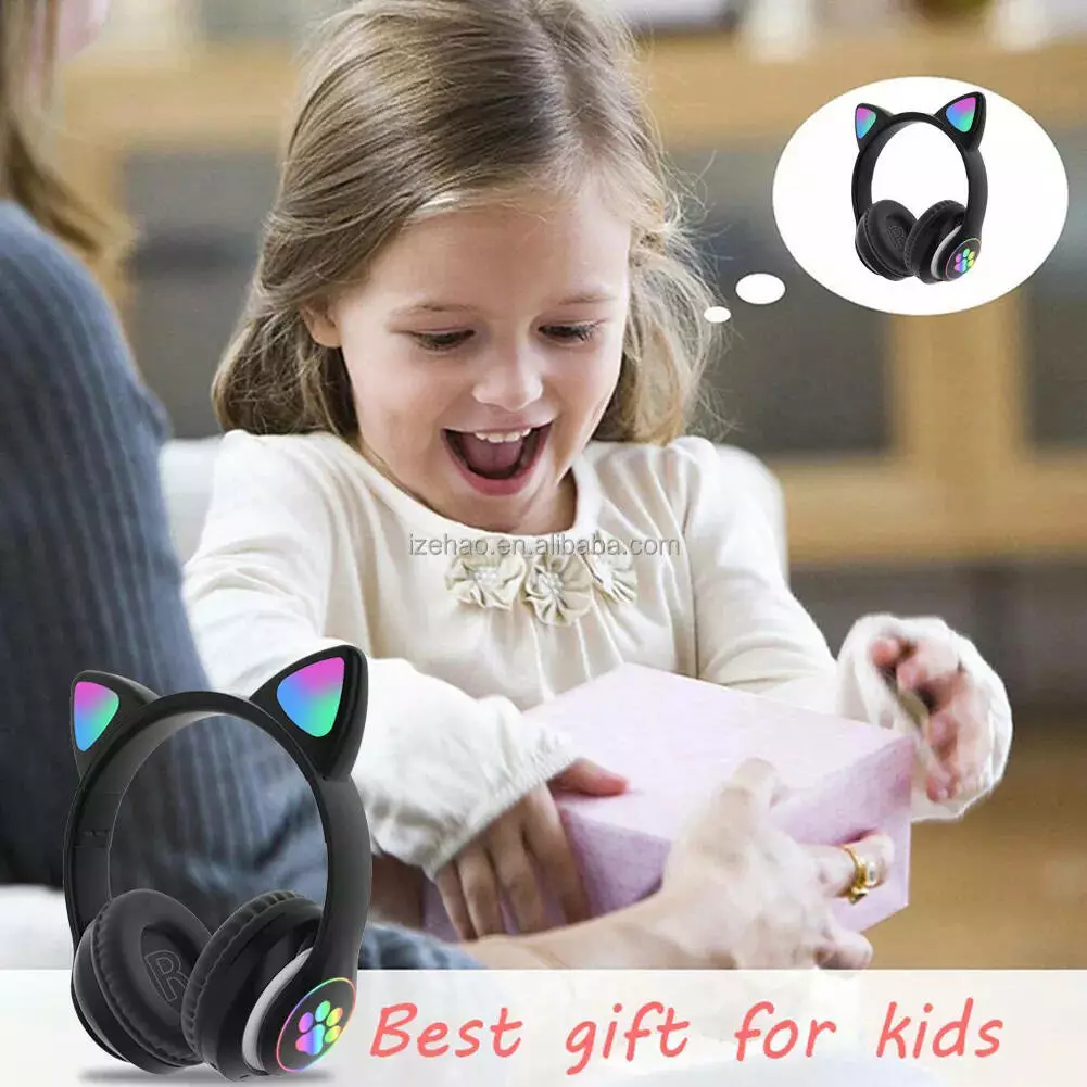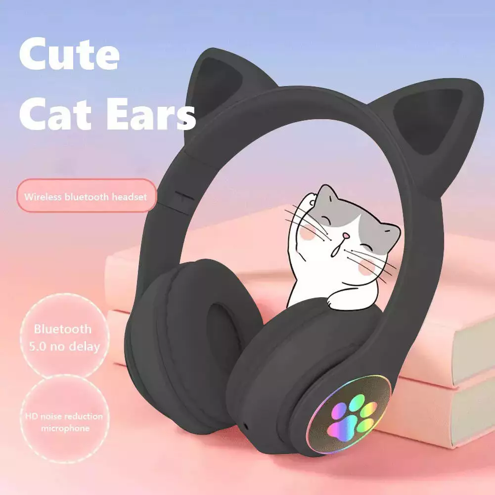 Беспроводные LED наушники с кошачьими ушками CAT STN-28. Цвет: черный