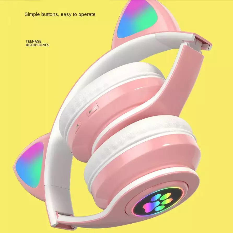 Беспроводные LED наушники с кошачьими ушками CAT STN-28. Цвет: розовый