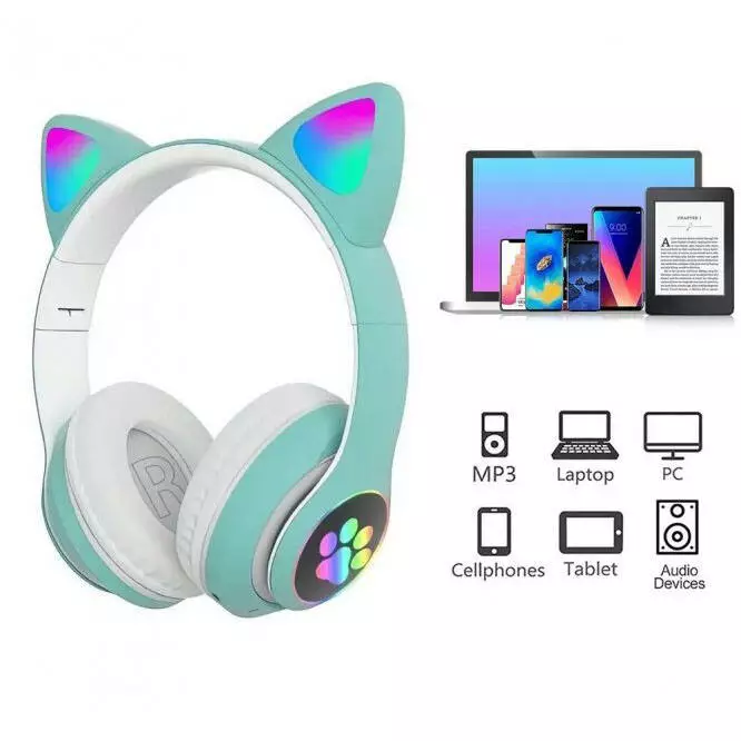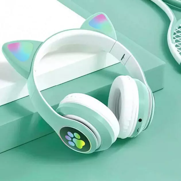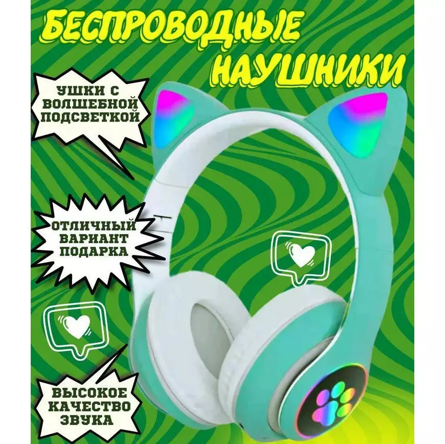 Беспроводные LED наушники с кошачьими ушками CAT STN-28. Цвет: зеленый