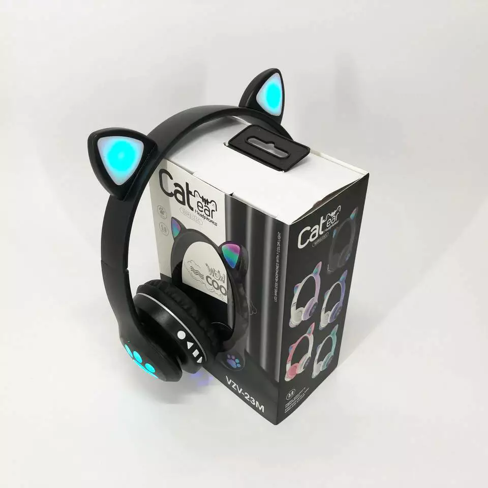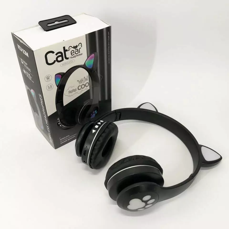 Беспроводные наушники с кошачьими ушками и RGB подсветкой Cat VZV 23M. Цвет: черный