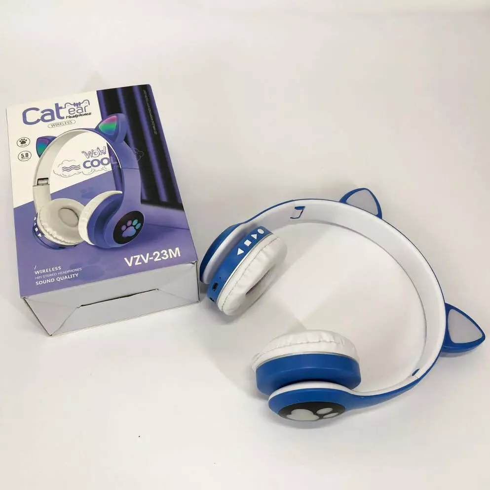 Беспроводные наушники с кошачьими ушками и RGB подсветкой Cat VZV 23M. Цвет: синий
