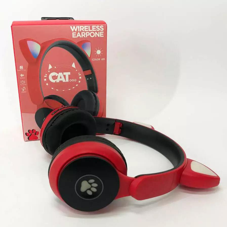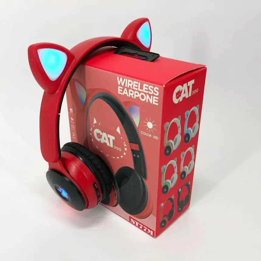 Беспроводные наушники ST77 LED со светящимися кошачьими ушками. Цвет: красный