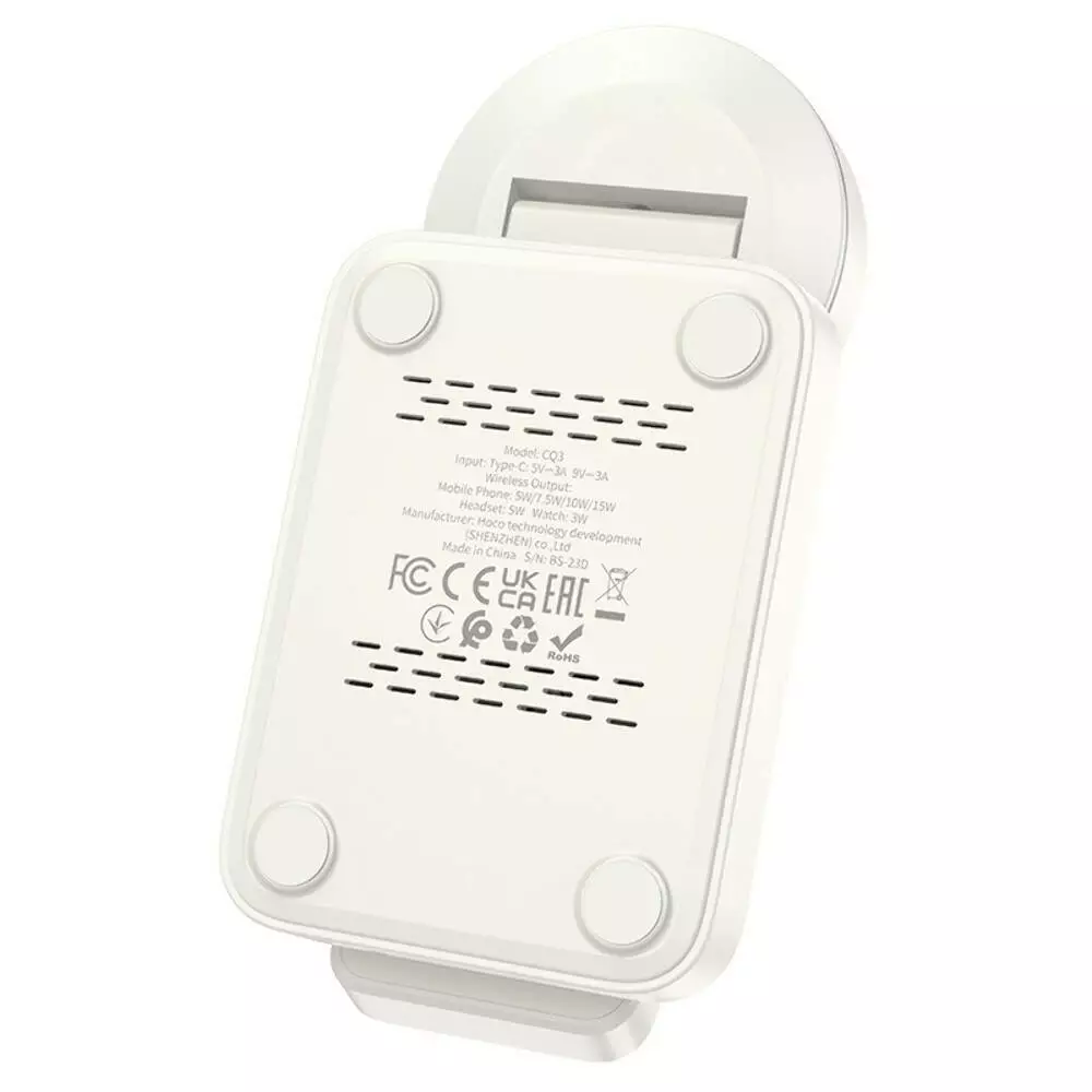 Безпровідний зарядний пристрій Hoco CQ3, 3 in 1, 15W, Magsafe, White
