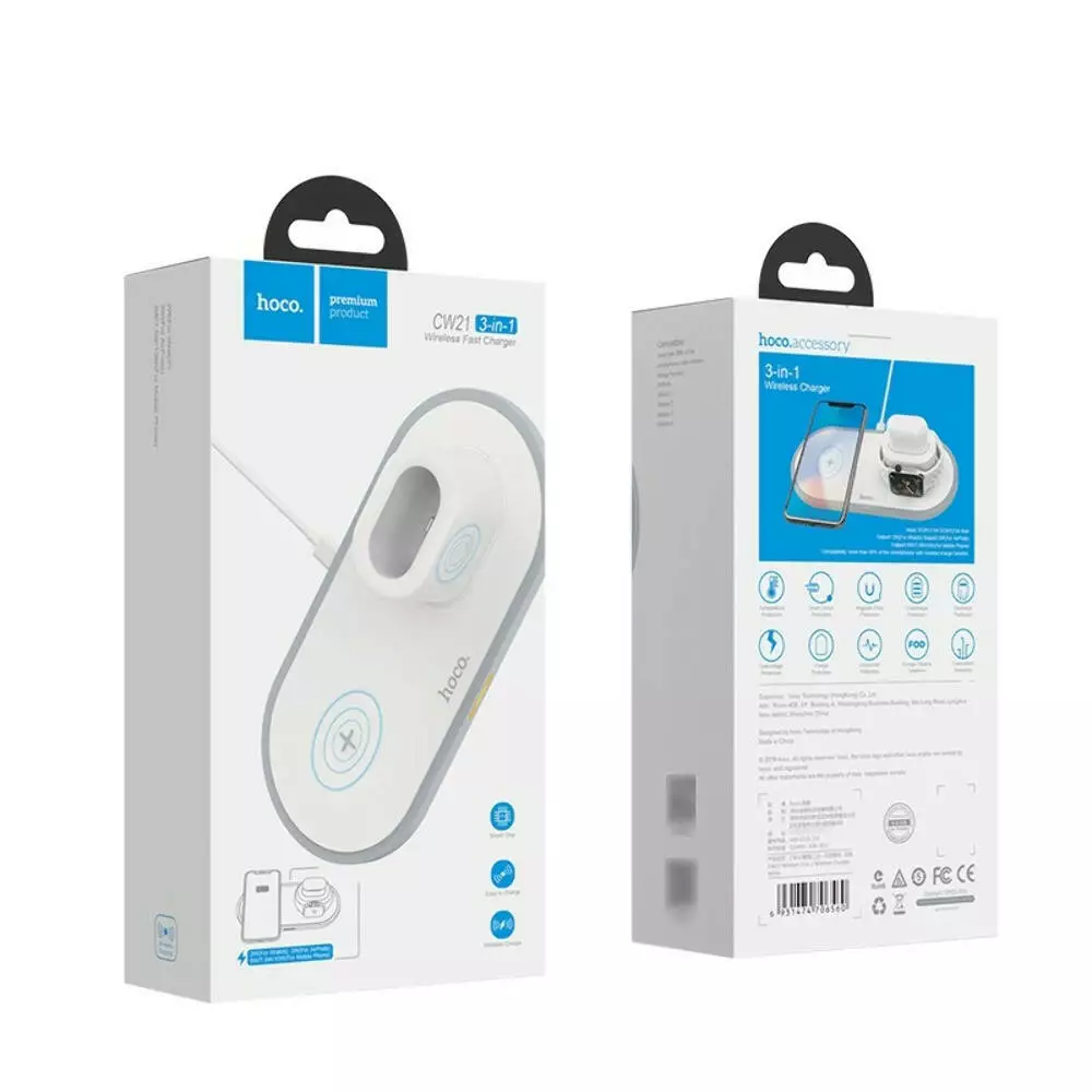 Безпровідний зарядний пристрій Hoco CW21, 3 in 1, 15W, White