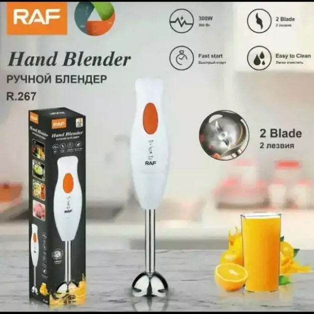 Сложно представить современную кухню без блендера. Наличие этого помощника на кухне гарантирует ускоренный и комфортный процесс приготовления еды. Блендер RAF поможет в ситуациях, когда нужно измельчить или смешать, а такая потребность возникает каждый день. Блендер используется для смешивания майонеза, соусов, детского питания, для рубки лука, льда, твердого сыра, мяса, приготовленных фруктов и овощей, коктейлей.