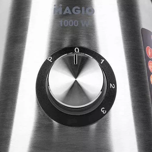 Одним из незаменимых кухонных помощников является стационарный блендер Magio MG-651. Мощность 1000 Вт позволяет с лёгкостью измельчать пищу, в том числе вареное мясо, овощи, фрукты, зелень и т.д. С помощью шестилопастного ножа из нержавеющей стали каждая хозяйка легко и быстро может приготовить пюре, тесто и эмульсии, взбить различные коктейли и другие напитки, муссы, соусы и приготовить много других привычных и экзотических блюд. Блендер даже поможет колоть лед для холодных напитков. Прорезиненные ножки не дадут прибору скользить по поверхности во время работы. Корпус из нержавеющей стали и защита от перегрева продлят службу блендера. Низкий шум при работе, переключатель режимов работы с LED подсветкой и крышка со съемным колпачком обеспечат комфортное использование прибора.