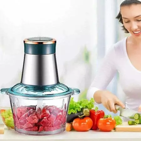 в двойном ноже из качественной нержавеющей стали и мощном
