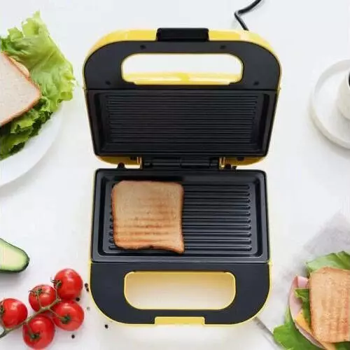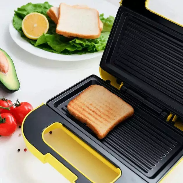 Корпус изготовлен из высококлассного термостойкого пластика черного цвета. Тип противня – поджаренный сэндвич в форме треугольников.
