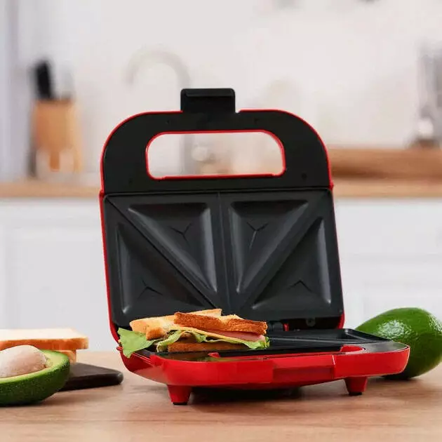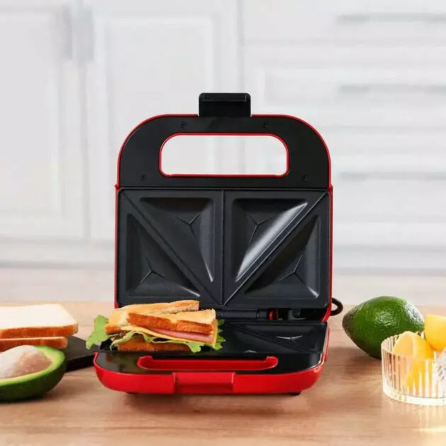 Бутербродница MG-376 обладает всеми необходимыми функциями для того, чтобы быстро приготовить вкусные и питательные сэндвичи. Одновременно в ней можно выпекать сразу по 4 сэндвича, края которых плотно спаиваются бортиками форм, надежно запирая начинку внутри. Корпус изготовлен из высококлассного термостойкого пластика красного цвета. Тип противня – поджаренный сэндвич в форме треугольников. Нагревательный элемент мощностью в 750 Вт обеспечит быстрое и равномерное нагревание двух рабочих поверхностей с антипригарным покрытием. Бутербродницы Magio очень удобны в обращении, сэндвичи не пригорают и легко извлекаются. Благодаря компактным размерам и фиксатору бутербродницу удобно хранить. На крышке имеются световые индикаторы питания и готовности к работе, что облегчает контролирование процесса приготовления.