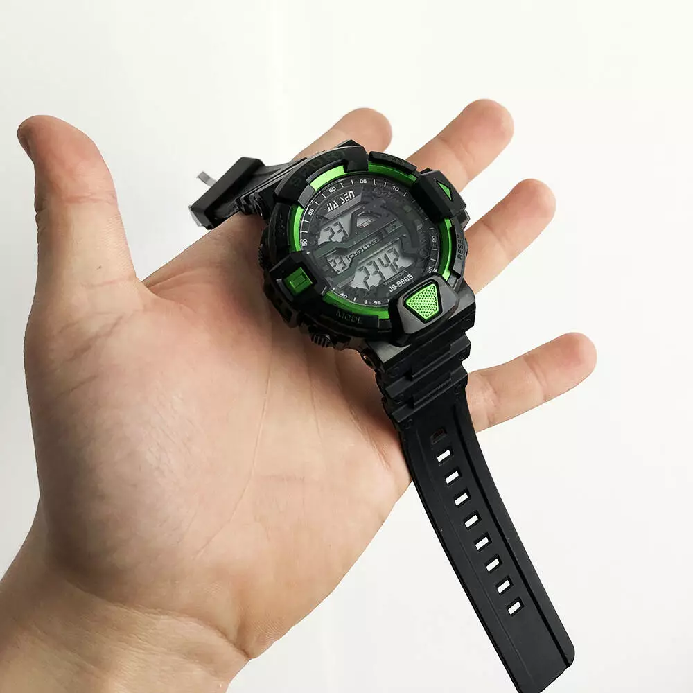 Часы наручные, электронные, с подсветкой. Цвет: зеленые вставки