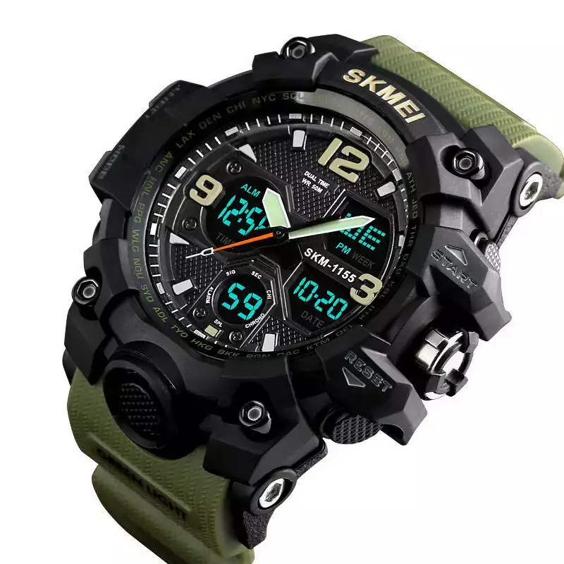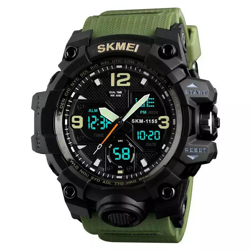 Часы наручные мужские SKMEI 1155BAG, часы тактические противоударны, армейские часы. Цвет: зеленый
