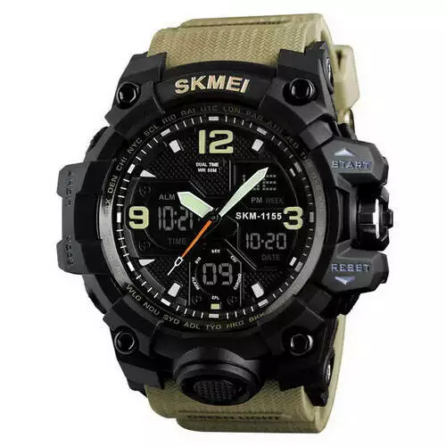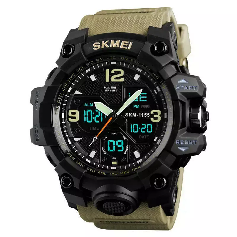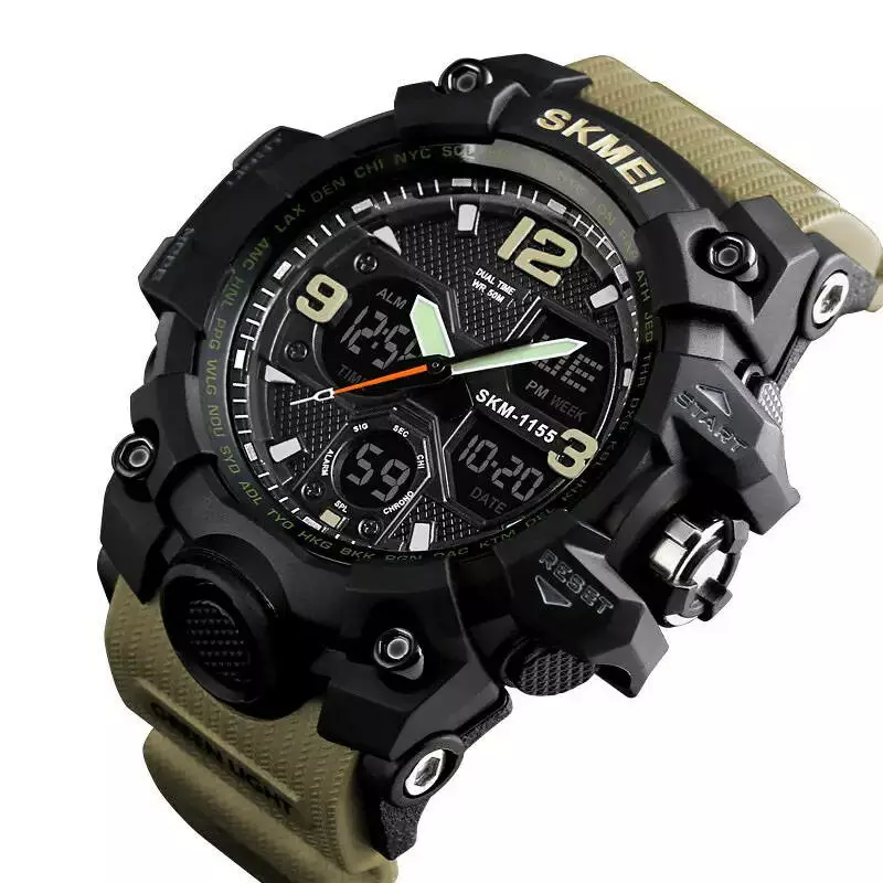 Часы наручные мужские SKMEI 1155BKH KHAKI, водостойкие тактические часы, армейские часы. Цвет: хаки