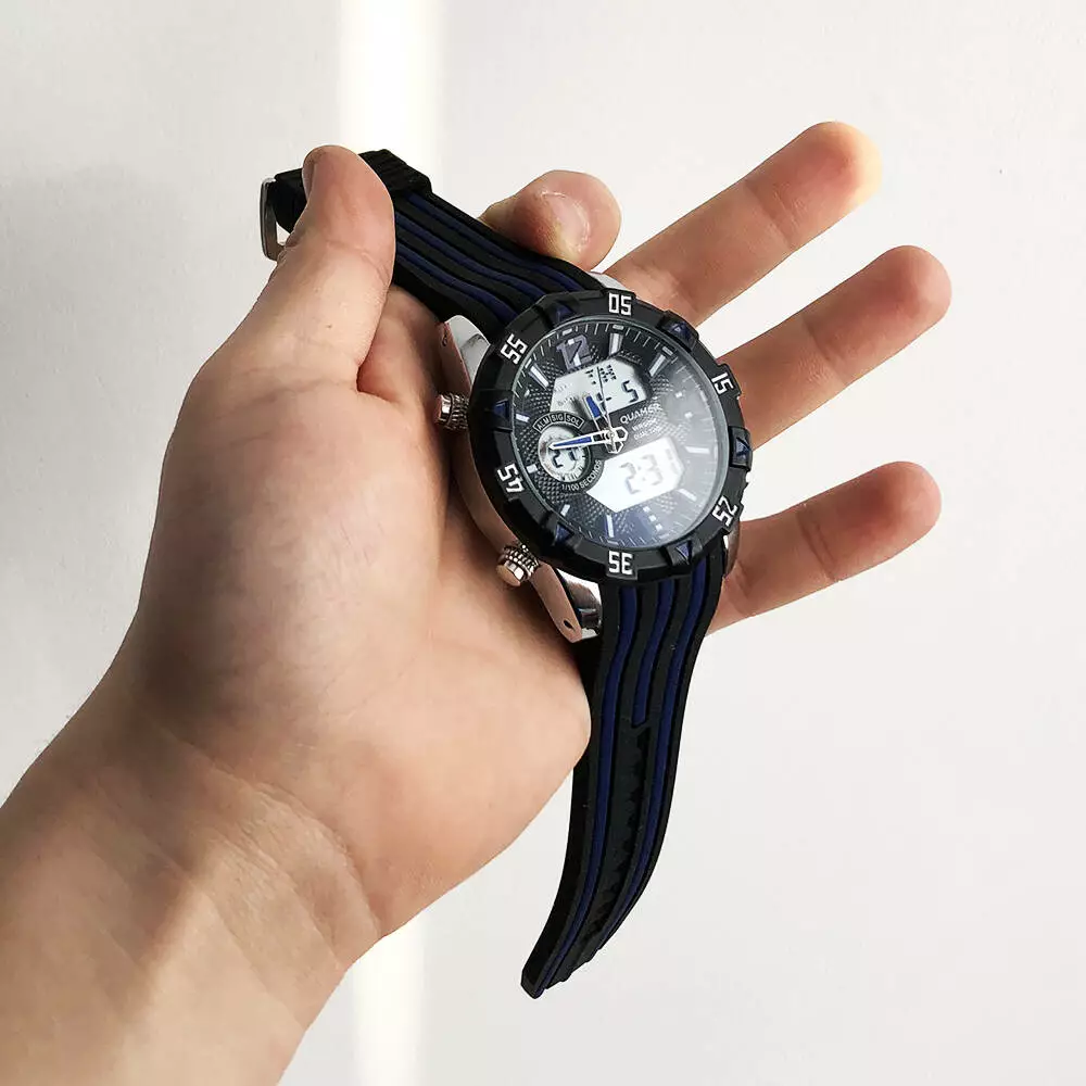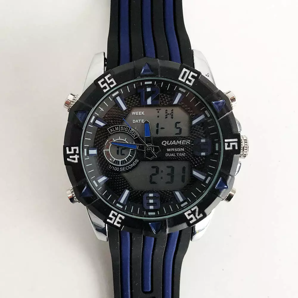 Часы наручные QUAMER, dual time, ремешок каучук. Цвет: синий