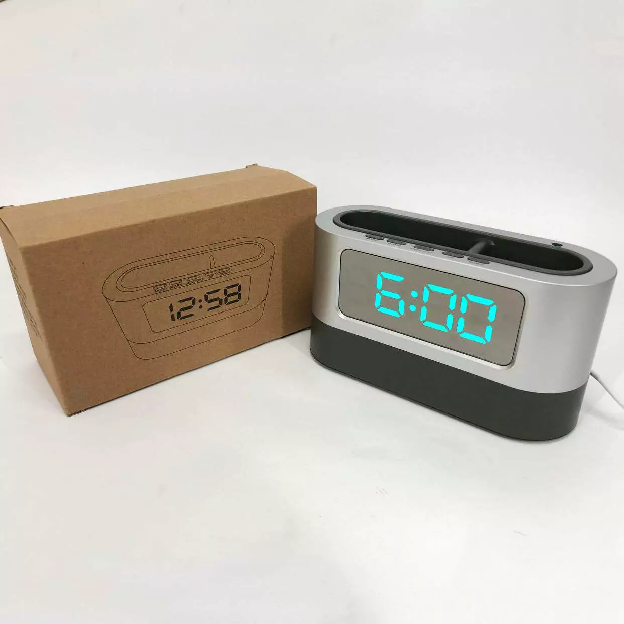 Работают часы от USB-кабеля, который можно подключить к сети, или к любому другому устройству с совместимым портом. На нижней панели часы имеют слот под 3 батарейки типа ААА.