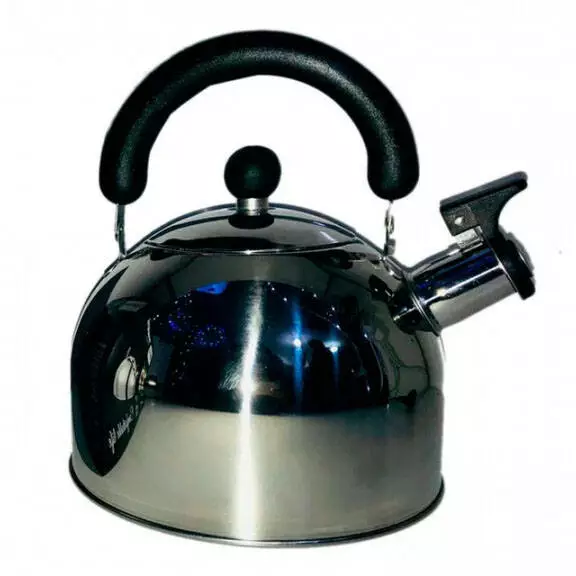 Ручка в чайнике не нагревается, она выполнена избакелита. Чайник оснащен свистком, который всегда напомнит озакипевшей воде. Он поднимается с помощью механического нажатия на специальныйклапан.