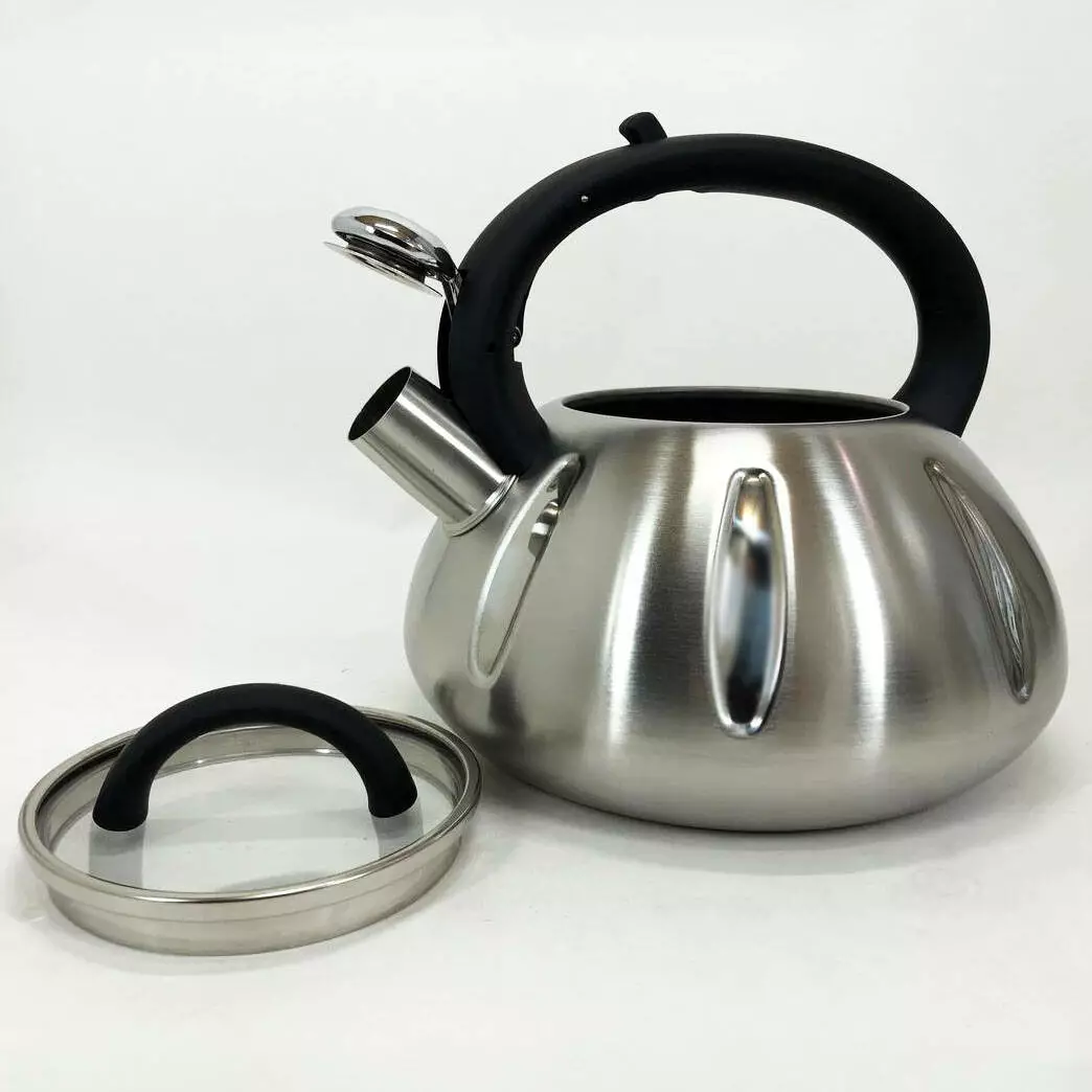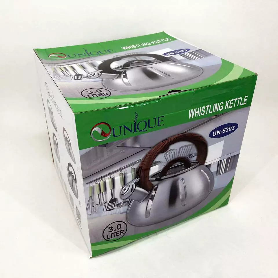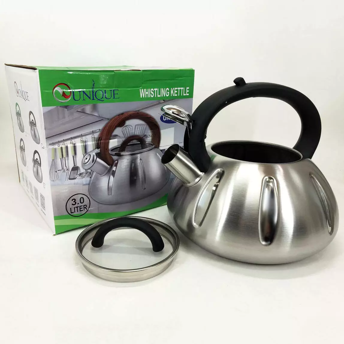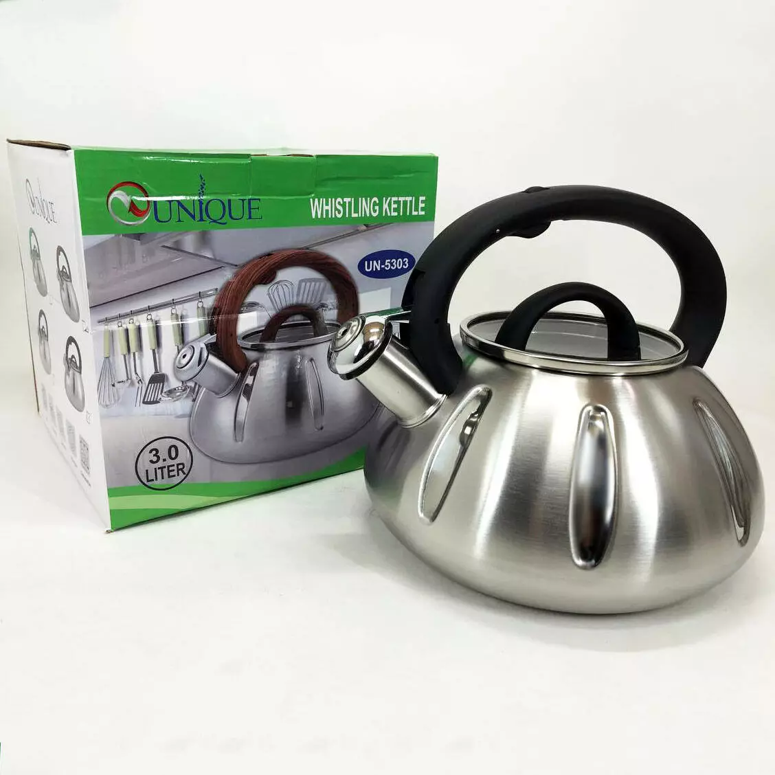 Чайник со свистком Unique UN-5303 кухонный на 3 литра, металический чайник из нержавейки. Цвет: черный