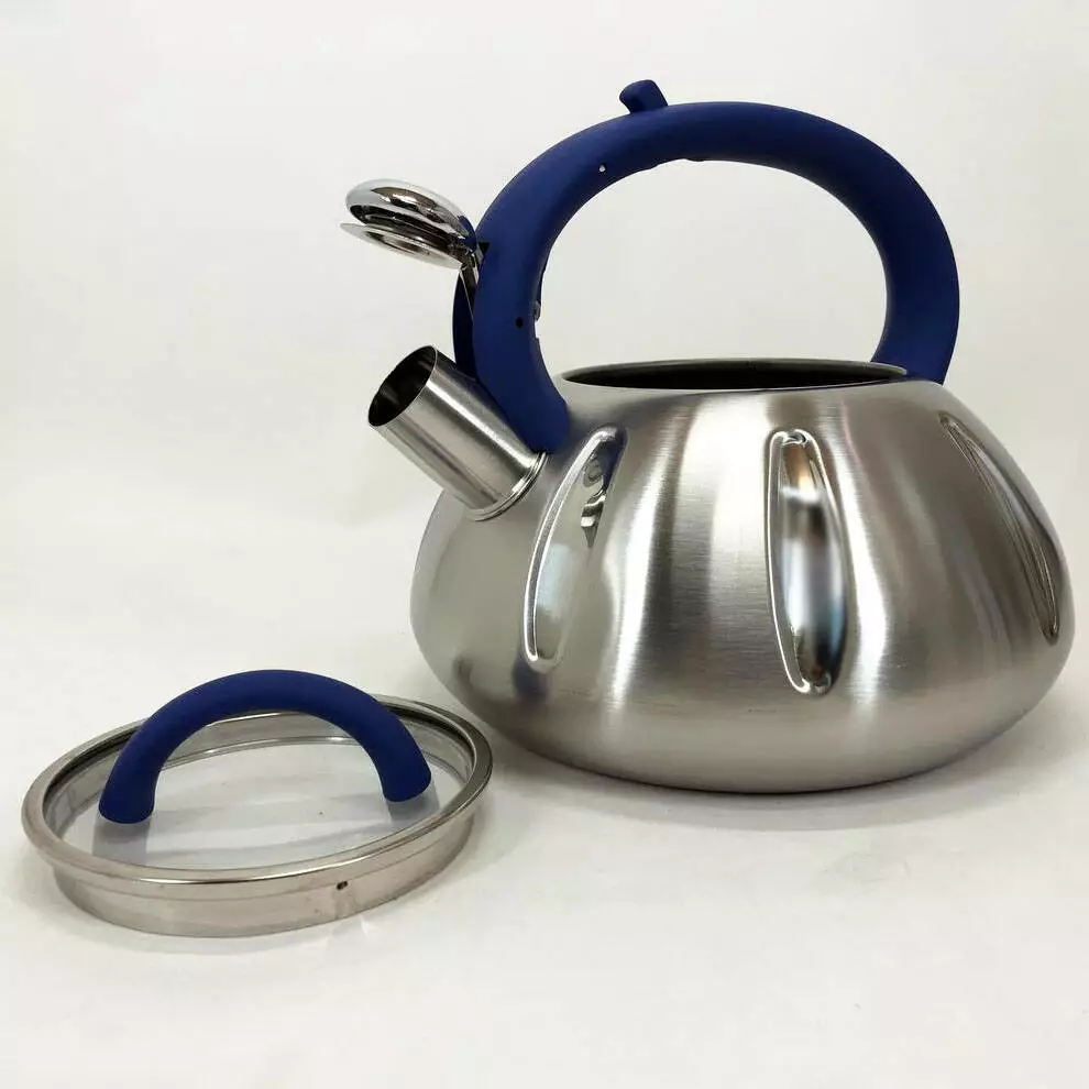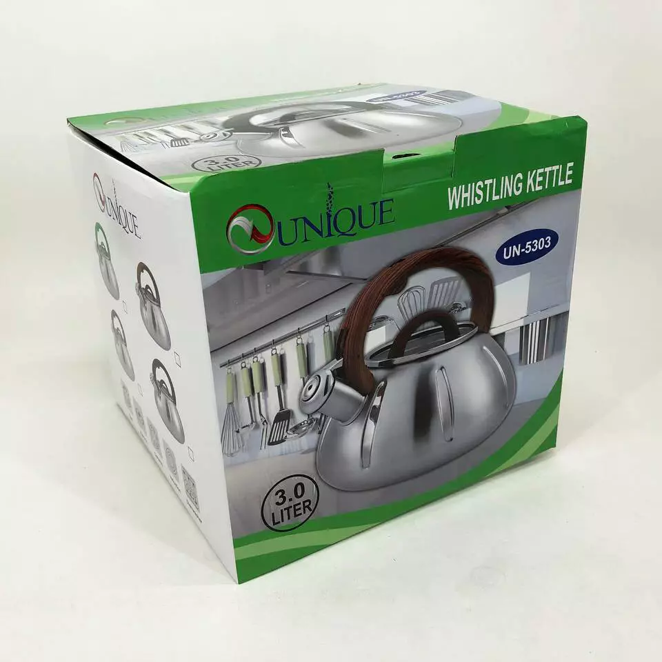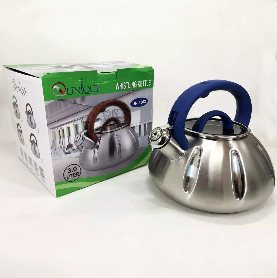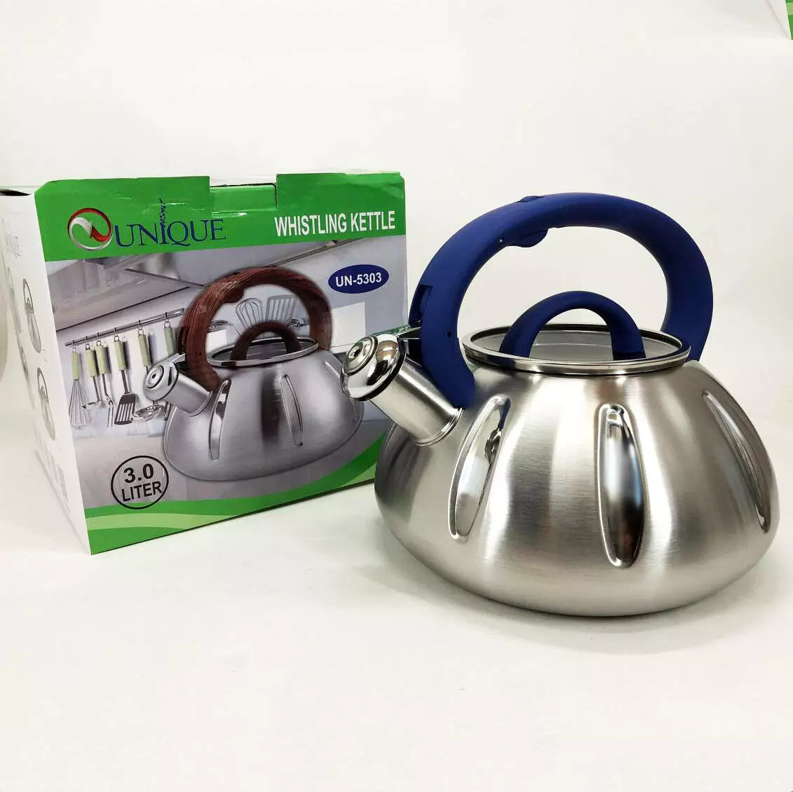 Чайник со свистком Unique UN-5303 кухонный на 3 литра, чайник для газовой плитки. Цвет: синий