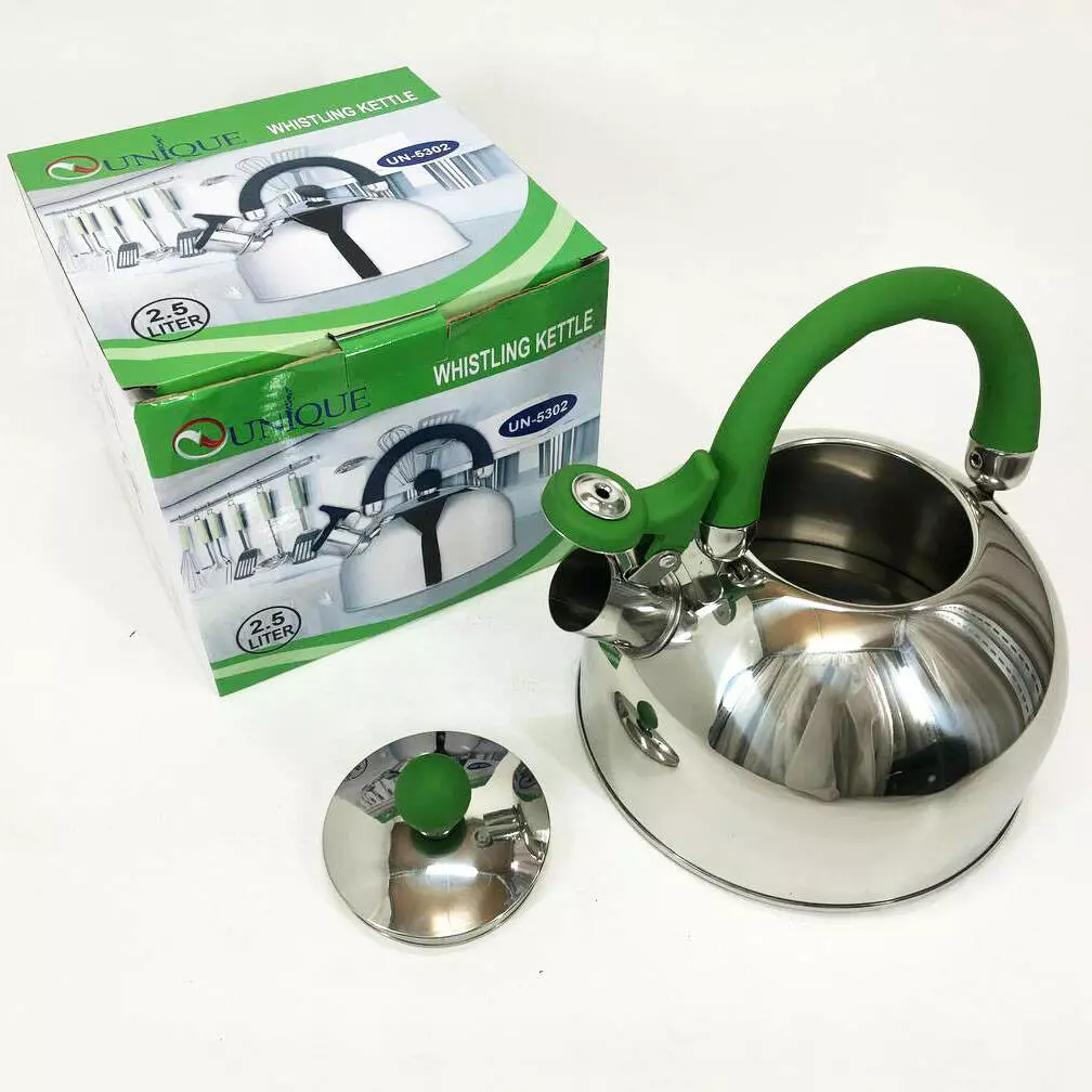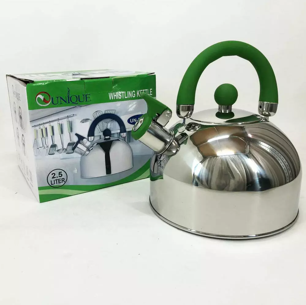 Чайник Unique со свистком UN-5302 2,5л, хороший чайник со свистком, чайник на плиту. Цвет: зеленый
