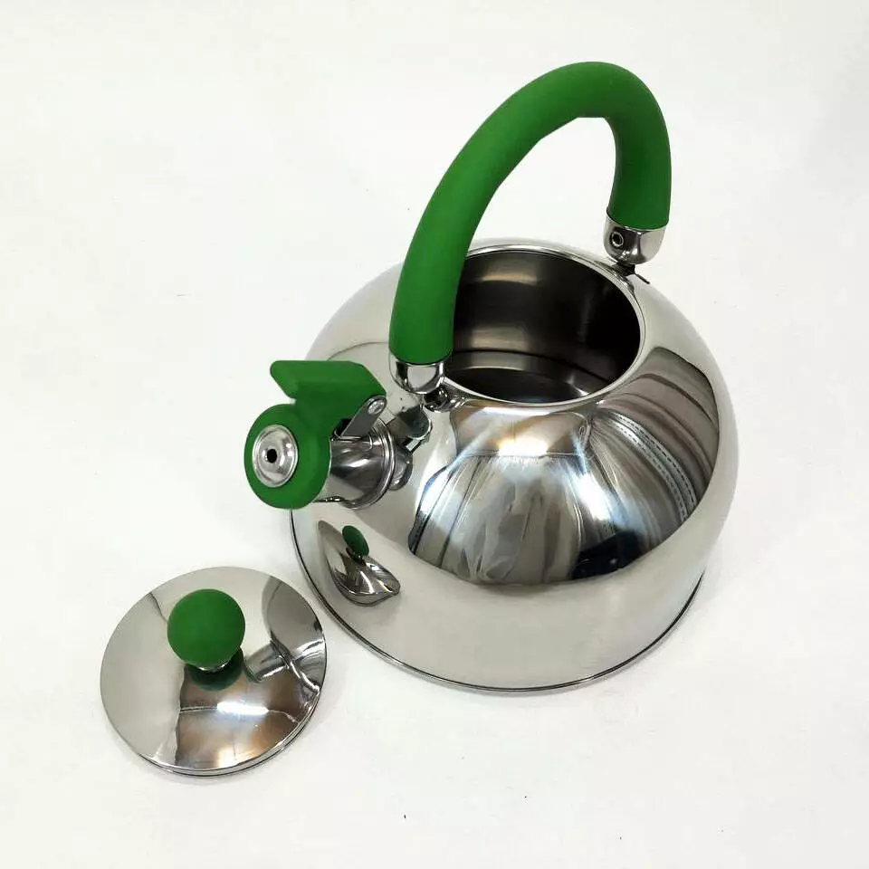 Удобнаяручка сделана из нейлона, а ее конструкция разработана так, что она ненагревается даже после длительного кипячения воды. Чайник оснащен специальнымсвистком, который сообщит о закипании воды. На ручке данной модели естьспециальный рычажок, с помощью которого можно открывать и закрывать свисток. Подходитдля всех типов плит.