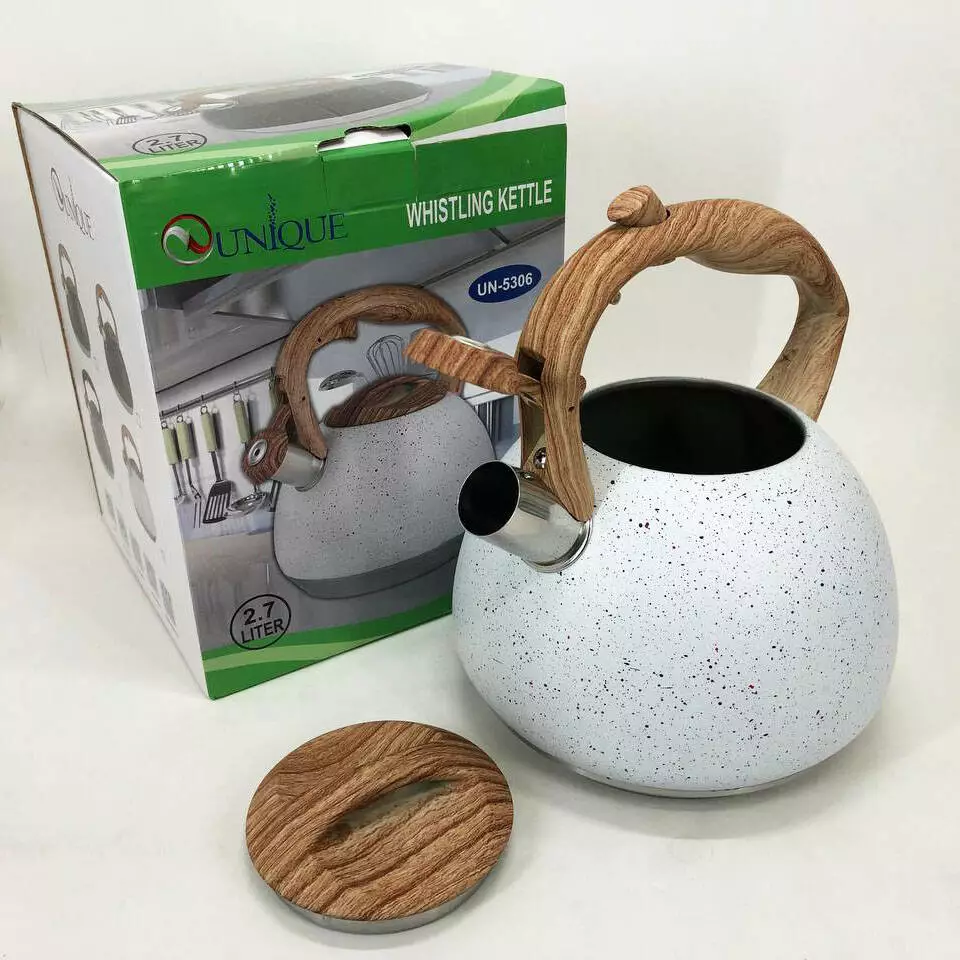 Чайник Unique со свистком UN-5306 2,7л мрамор. Цвет: белый