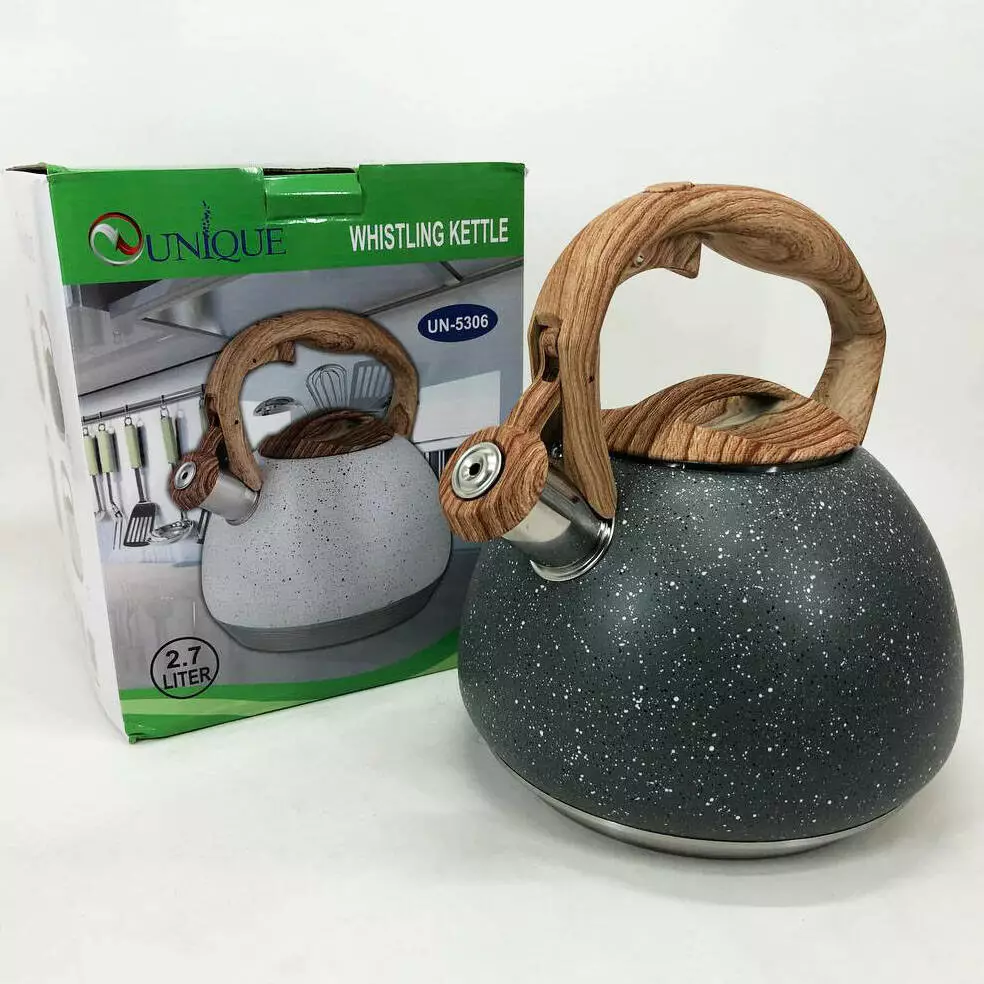 Чайник Unique со свистком UN-5306 2,7л мрамор. Цвет: темно-серый
