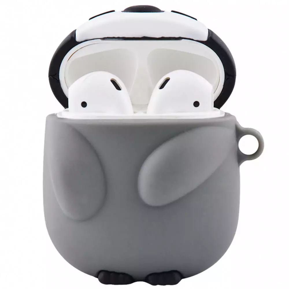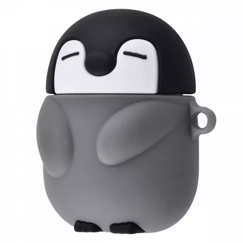 Чехол для Apple AirPods силиконовый серый Пингвин