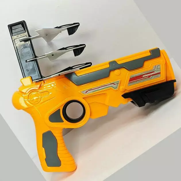 Детский игрушечный пистолет с самолетиками Air Battle катапульта с летающими самолетами (AB-1). Цвет: желтый