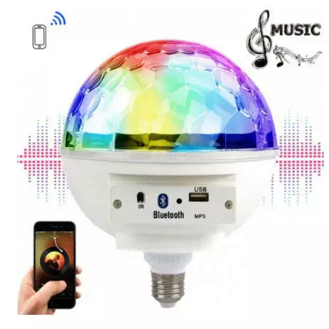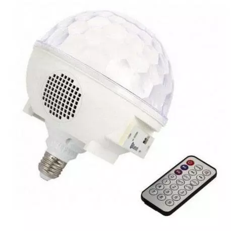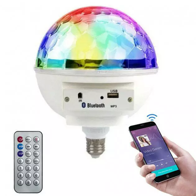 Лампочку можно использовать как для веселого времяпрепровождения в кругу семьи, друзей, так и для декора в баре, ресторане и других развлекательных заведениях. Лампочка оснащена мотором, что дает не забываемый эффект в стиле диско. Её можно вкручивать в обычный цоколь, управляя обычным выключателем, а можно управлять с пульта ДУ. Встроенные динамики позволяют воспроизводить музыку как с FLASH памяти, так и от системы Bluetooth