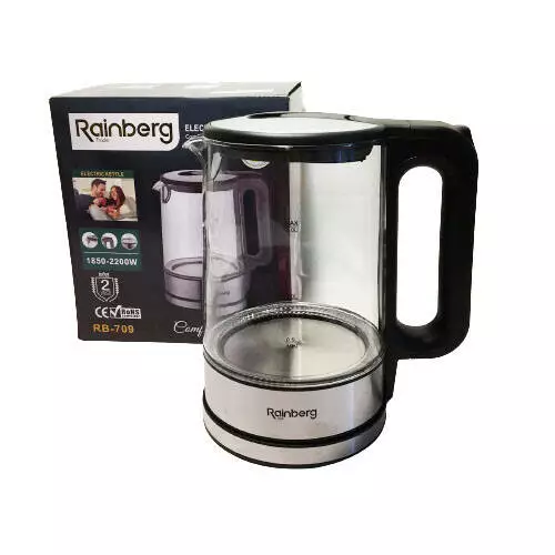 Дисковый электрический чайник Rainberg RB-709 стеклянный с подсветкой, бесшумный чайник. Цвет: черный