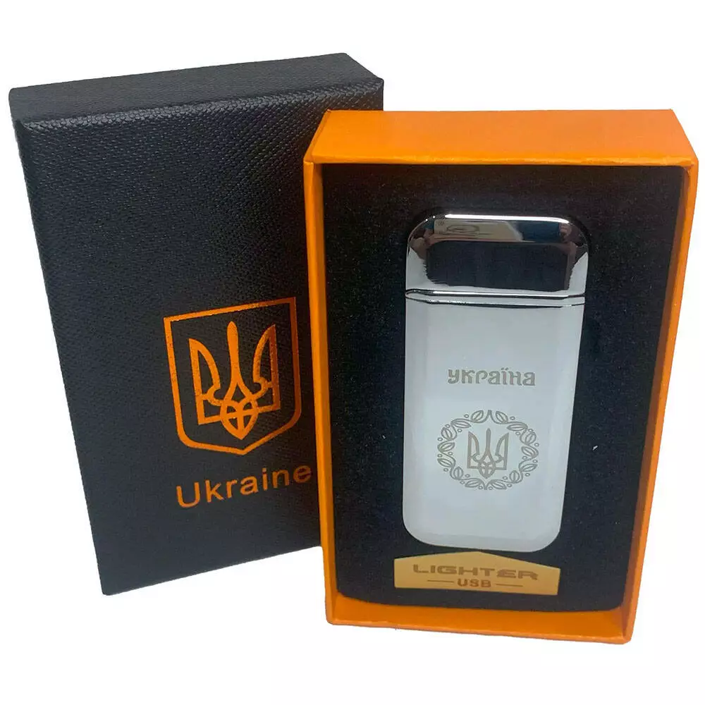Дуговая электроимпульсная USB зажигалка Герб Украины индикатор