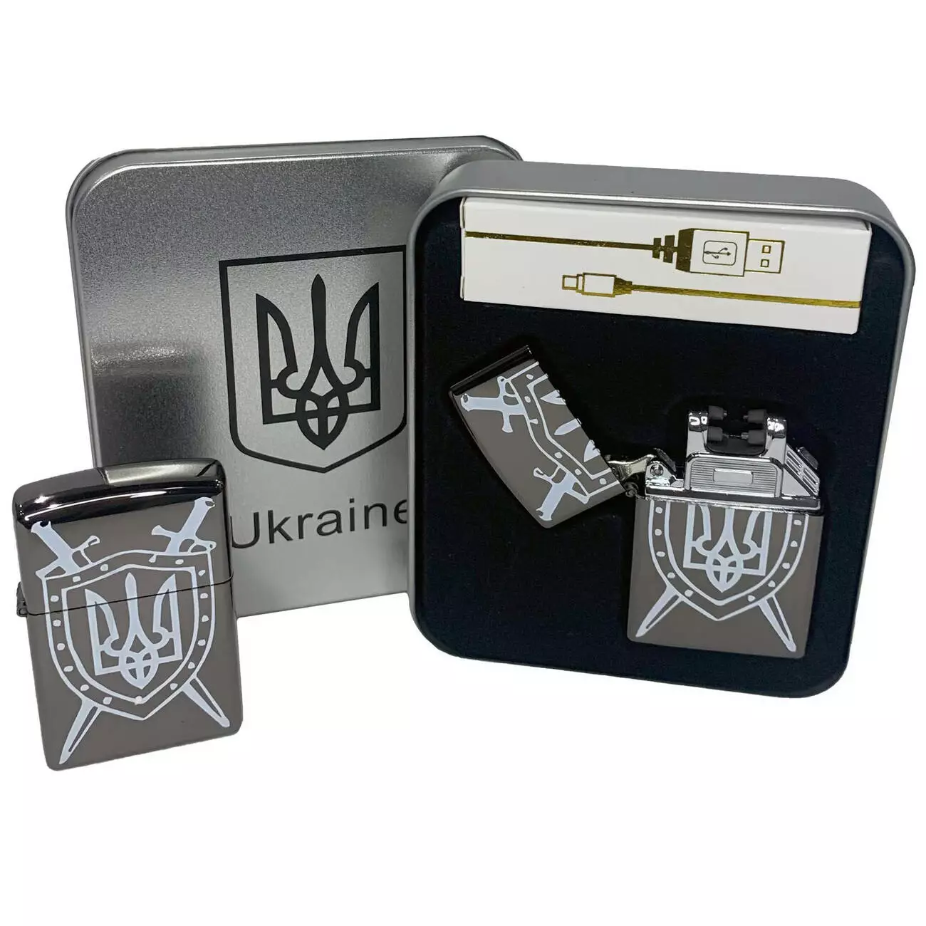 Дуговая электроимпульсная USB зажигалка Украина металлическая