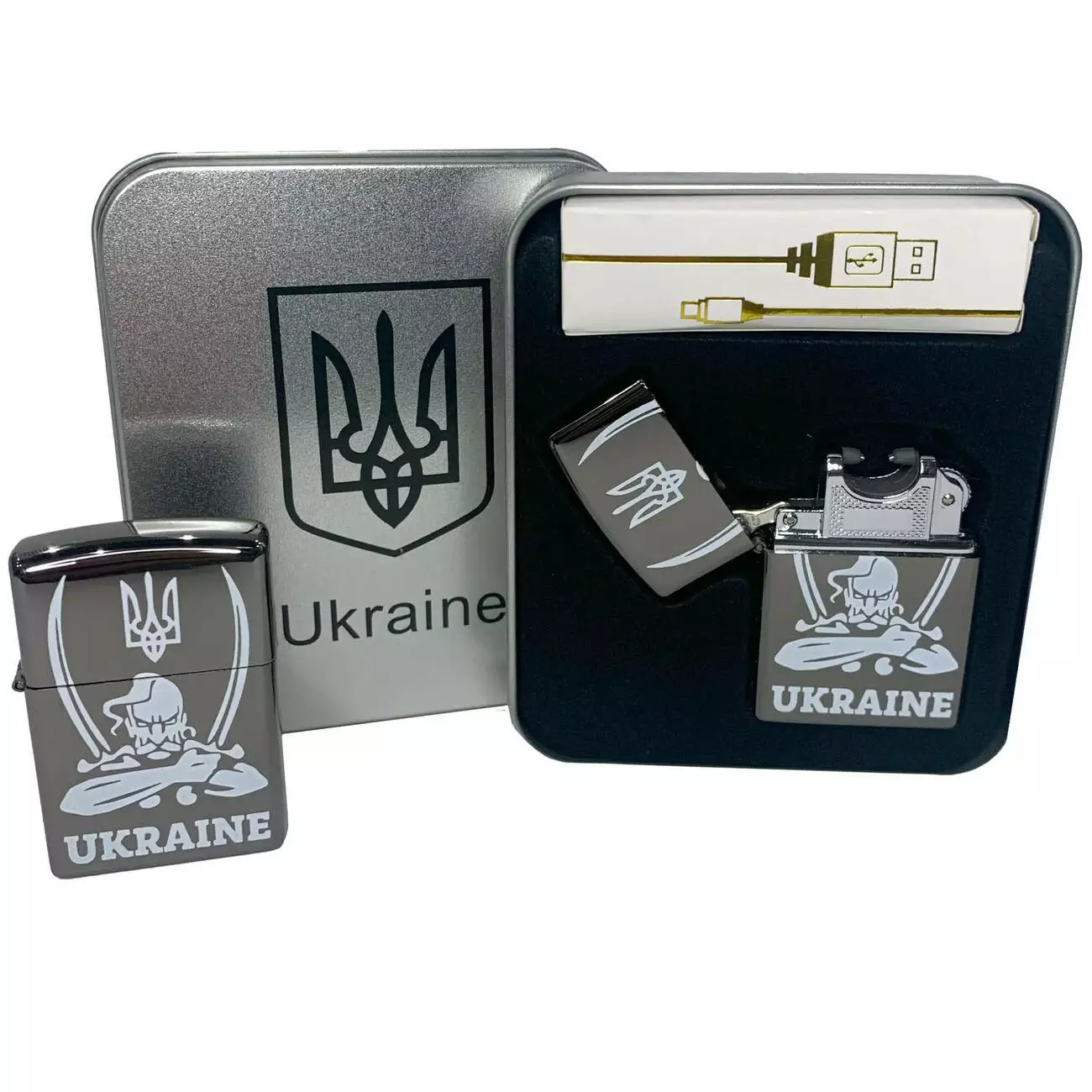 Дуговая электроимпульсная USB зажигалка Украина (металлическая