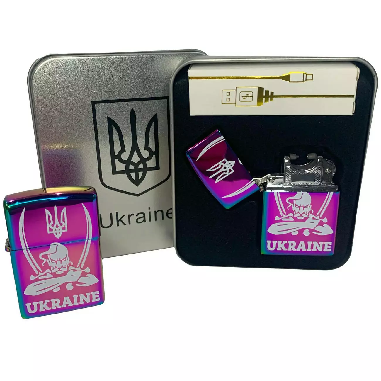 Дуговая электроимпульсная USB зажигалка Украина (металлическая коробка) HL-449. Цвет: хамелеон