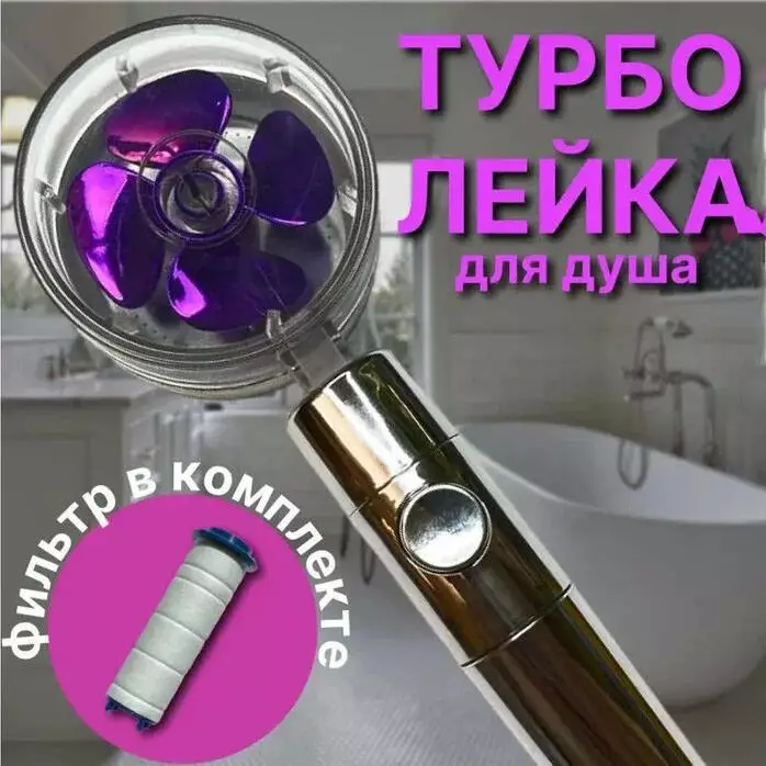Душевая турболейка высокого давления, водосберегающая насадка для душа c вентилятором с уникальным рисунком воды. Цвет: фиолетовый