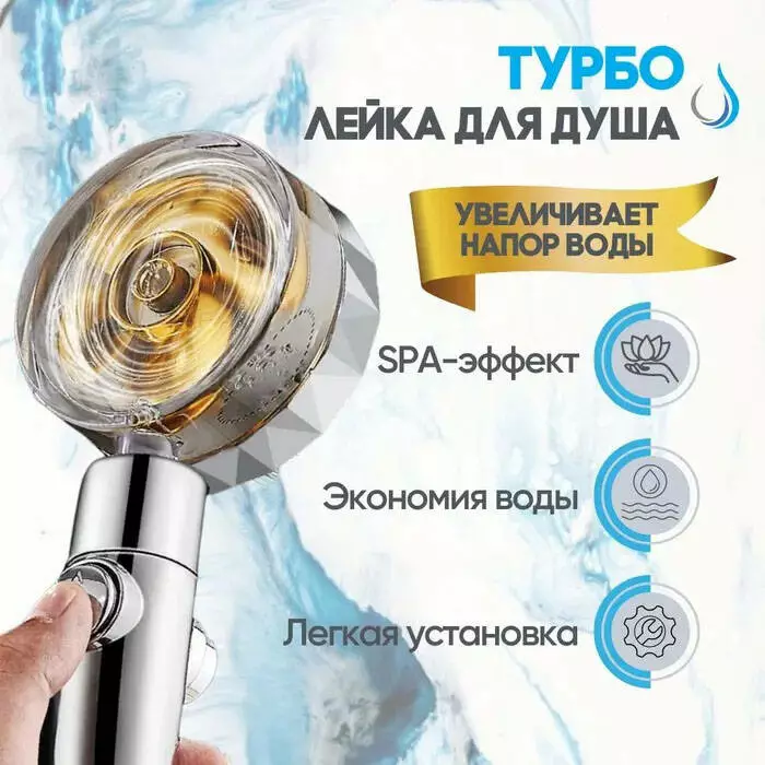 Душевая турболейка высокого давления, водосберегающая насадка для душа c вентилятором с уникальным рисунком воды. Цвет: золотой