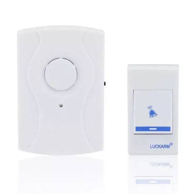 Беспроводной звонок LUCKARM 8203 - это очень удобная модель дверных звонков, которые позволяют абсолютно без проводов на расстоянии до 150 м разместить передатчик сигнала с кнопкой от приемника, который оповестит о приходе гостей веселой мелодией и миганием лампочки.