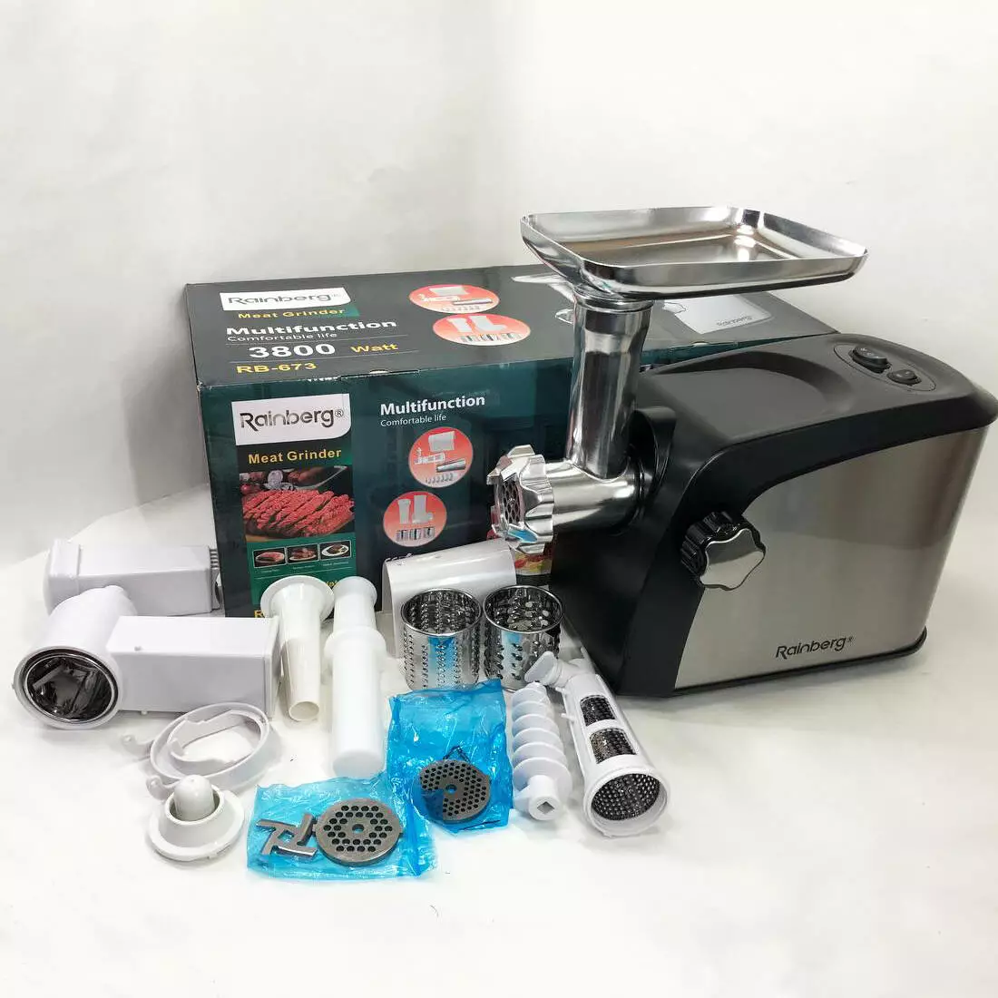 Электрическая мясорубка Rainberg RB-673 с соковыжималкой и шинковкой 9 насадок 3000W с реверсом