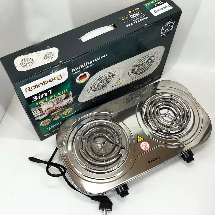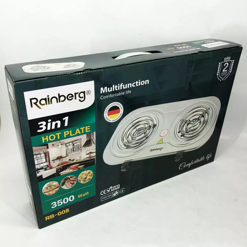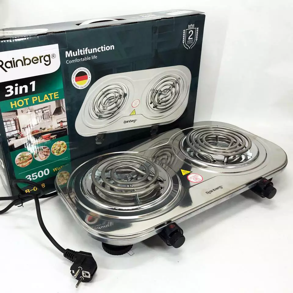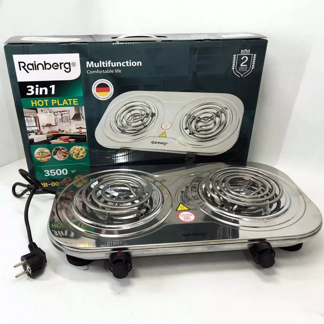 Электрическая плита Rainberg RB-008 на 2 поверхности спиральная + 2 регулятора 3500 Вт