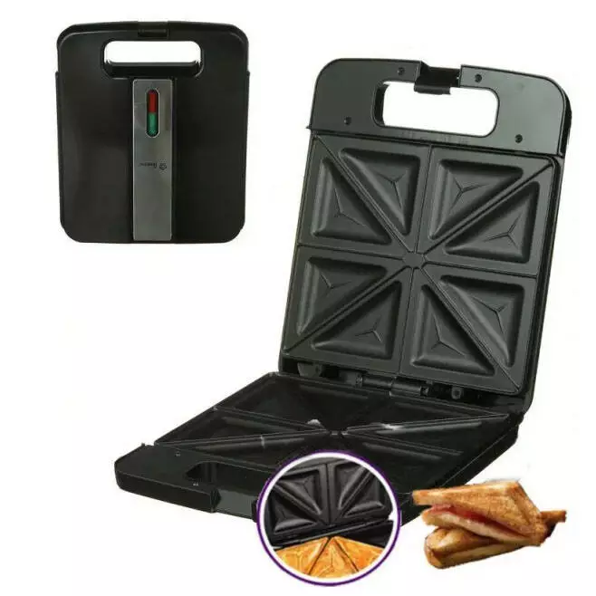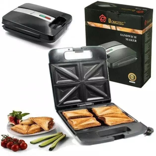 Казалось бы, бутерброд – самое обыкновенное блюдо для людей, у которых нет времени на полноценный завтрак или обед, но и эта незатейливая закуска-перекус может быть как различного уровня сложности, так и рецептуры. Прибор позволяет приготовить до 4 больших бутербродов за одну выпечку. Сендвичница-тостер Domotec MS-7718 – с антипригарным покрытием особенно популярный среди семей. Бутерброды будут разделены на 8 частей в форме треугольников. Специальный слой на нагревательных плитах предотвращает прилипание пищи к ним. Сэндвич-тостер можно хранить в вертикальном положении – все для удобства пользователя.