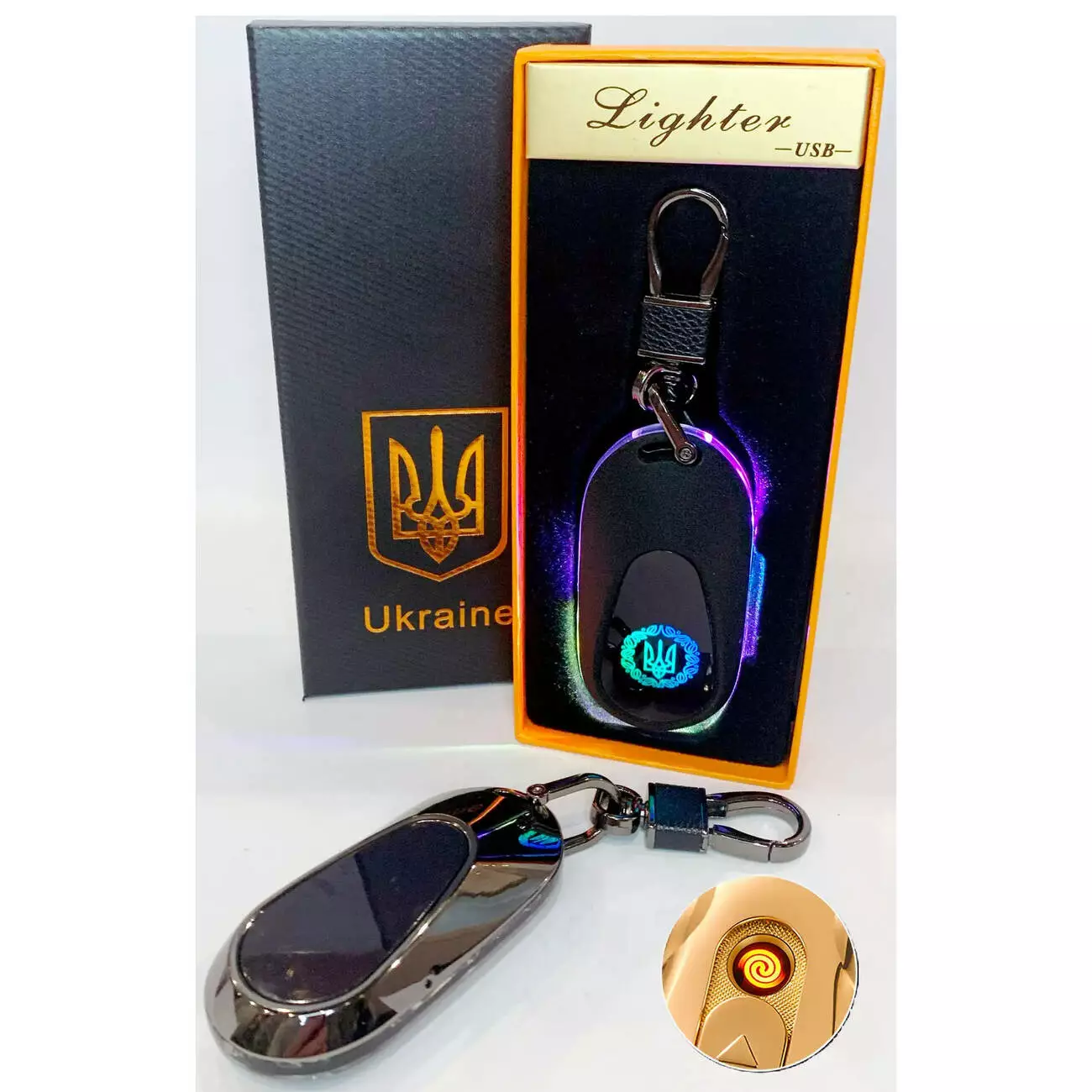 Электрическая зажигалка - брелок Украина с USB-зарядкой и подсветкой, необычная HL-472. Цвет: черный